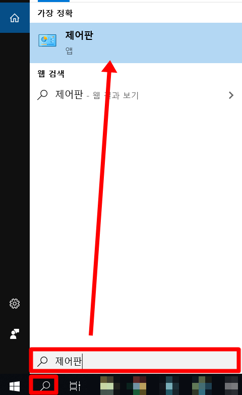 고급의 과정입니다. 이제 윈도우에서 제공하는 간편 설정메뉴에서는 해결할 수 없는 방법이라 마지막에 수록하였네요. 좌측 하단에서 돋보기를 누르고 제어판을 검색합니다. 제어판이 나왔다면 바로 클릭해주시길 바랍니다. 그다음에 시스템을 찾아서 들어가시면 됩니다. 네트워크 및 공유센터로 들어가시면 안됩니다.