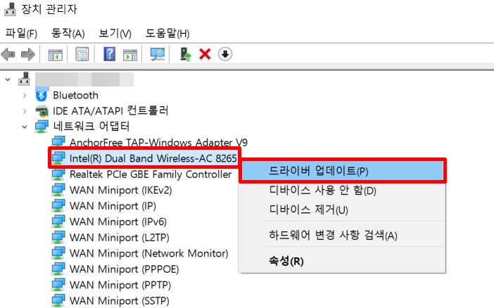 윈도우10 와이파이 연결을 위한 드라이버 업데이트/ 초기화 방법
