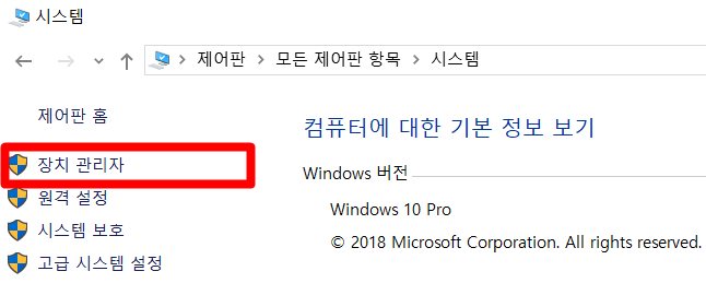 시스템에서 좌측 장치 관리자를 클릭해주시면 됩니다. 이 시스템의 항목에서는 윈도우10 노트북의 드라이버의 업데이트와 초기화등을 사용할 수 있습니다. 윈도우10 와이파이 연결이 안되는 근본적인 원인인 서비스 지원이 안되는 드라이버를 최신화시켜주는 것이죠.