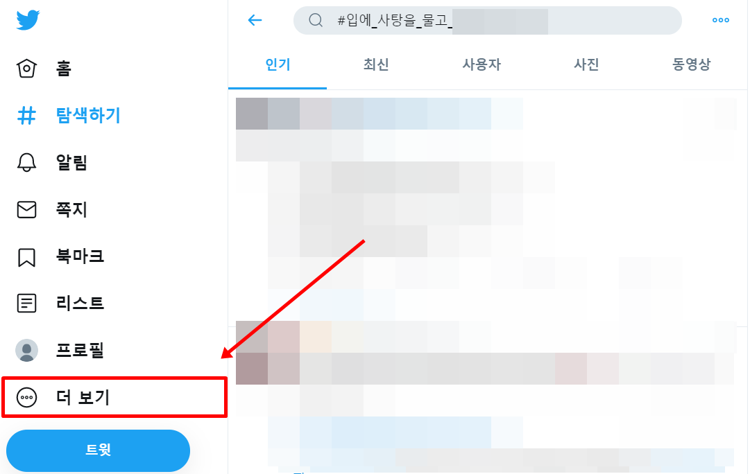 컴퓨터 트위터에서 우측 카테고리에서 더보기 메뉴로 진입합니다.