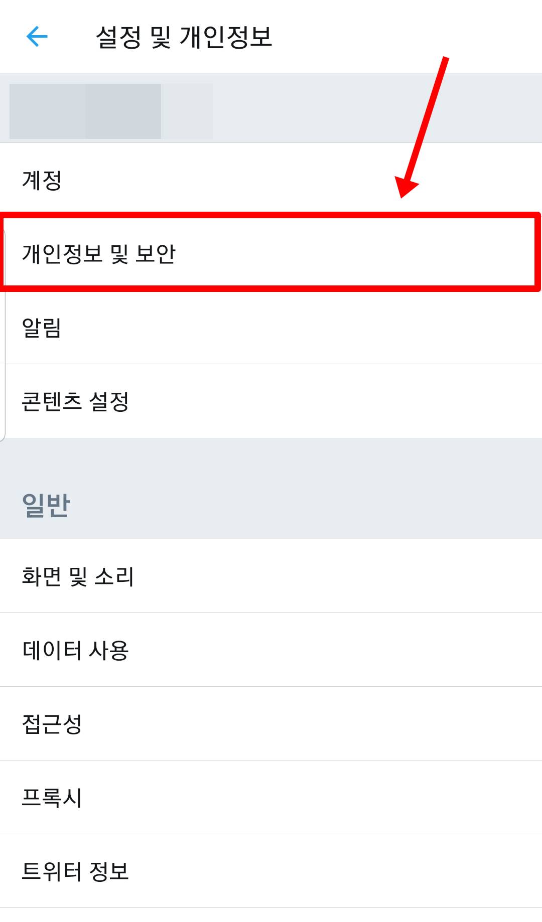 설정 및 개인정보 메뉴를 눌러주세요.