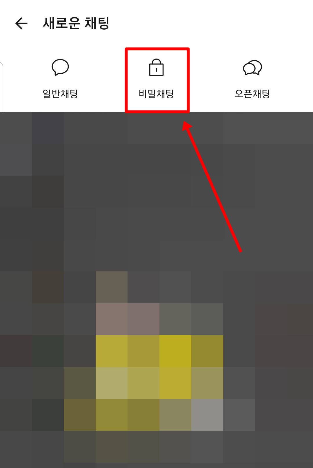 중앙 버튼에 비밀채팅이 있죠. 클릭해서 들어가줍니다.