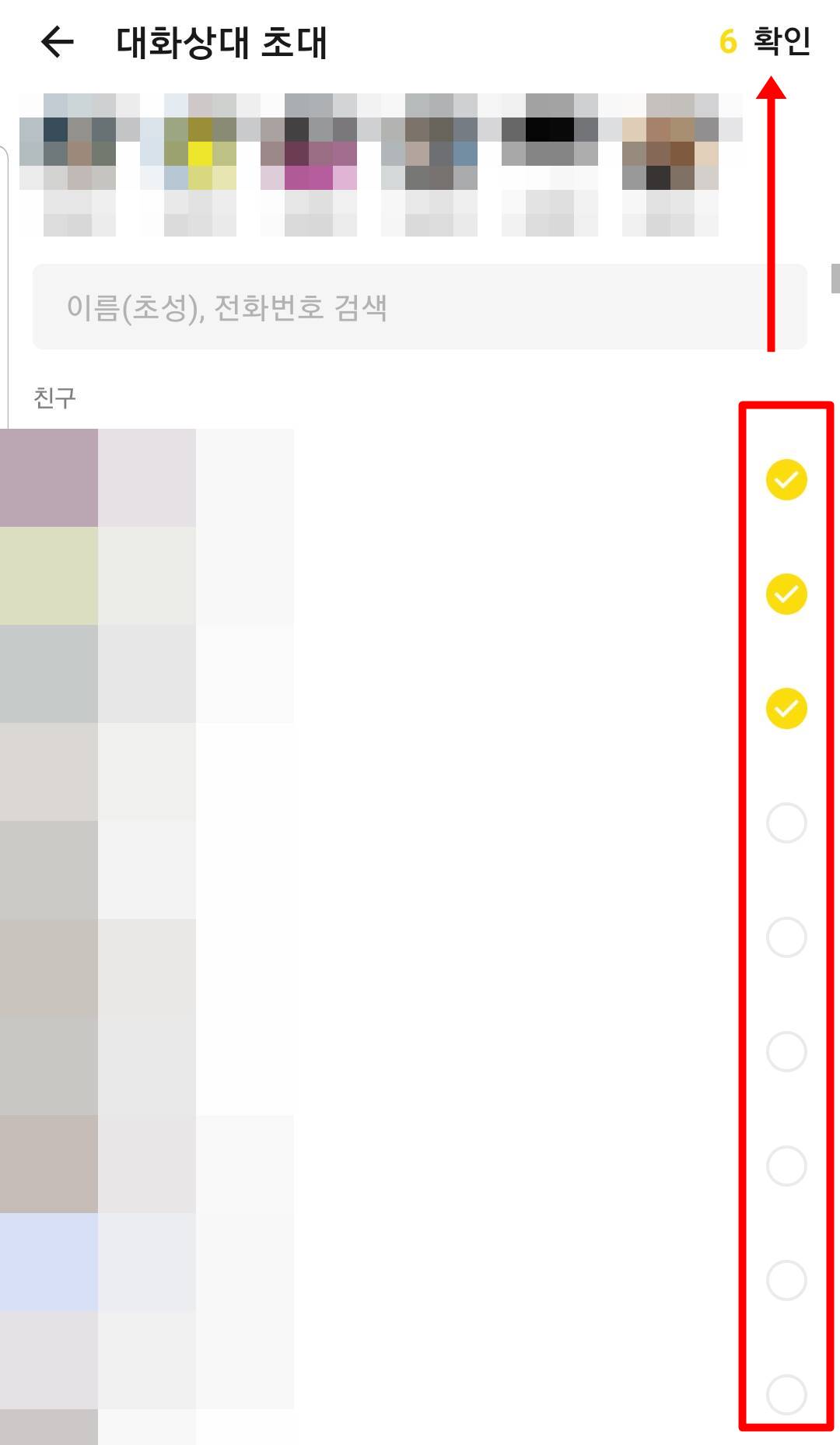 이제 카카오톡 비밀채팅을 이용하고 싶은 상대방을 찾아서 체크한 후에 확인을 눌러주면 되는데요. 설명드렷듯이 1:1방만 아니라 다수의 사람들과도 함께 비밀채팅 톡방을 사용할 수 있습니다.