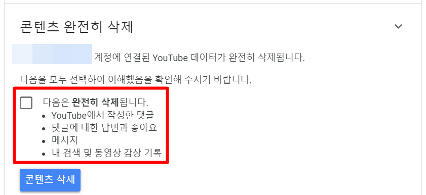 완전히 유튜브 계정 삭제시 다음이 100% 제거됩니다. 유튜브 작성 댓글, 댓글 답변 좋아요, 메시지, 내 검색 동영상 감상 기록이 지워집니다.
