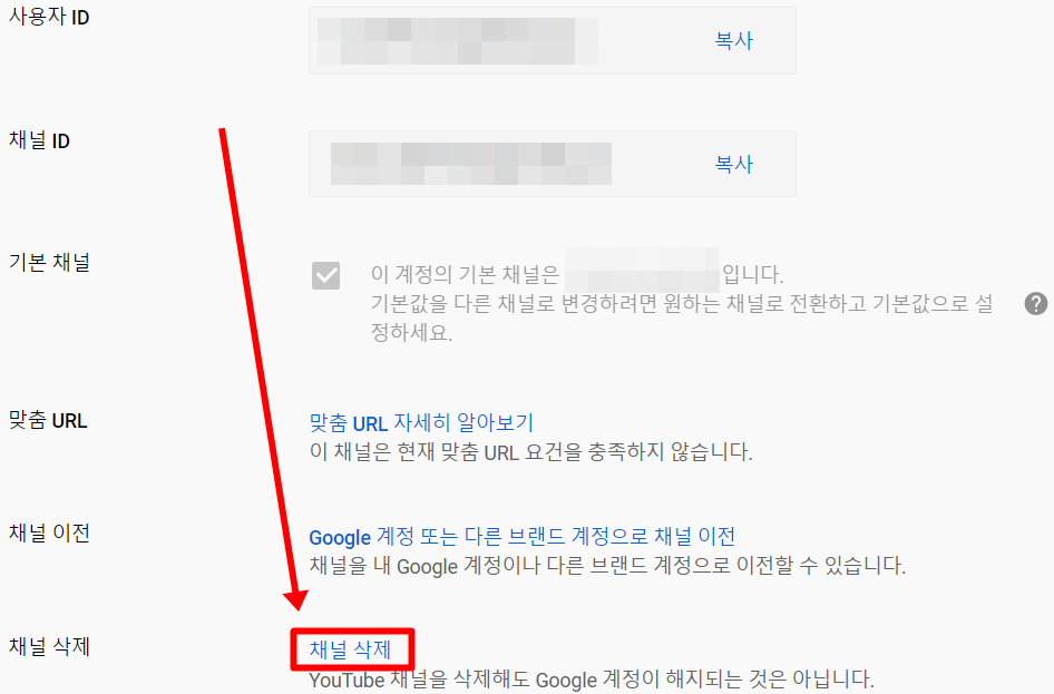 맨 아래 하단을 보면 채널 삭제로 들어가시면 됩니다. 현재 하고 있는 유튜브 계정삭제는 유튜브 채널을 지우는 것으로 구글 계정이 사라지는 것은 아닙니다.