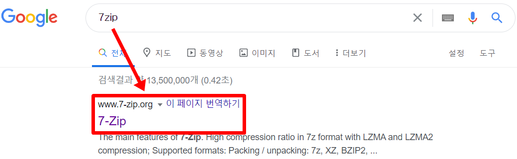 7-Zip 압축을 풀기 위한 프로그램을 다운로드 받기 위해서는 7zip 사이트로 이동하셔야 합니다. 구글에 검색을 하면 상단에 바로 보여지는 곳인데요. 쉽게 접속하기 편하게 주소를 첨부드릴테니 바로 들어가보시길 바랍니다.