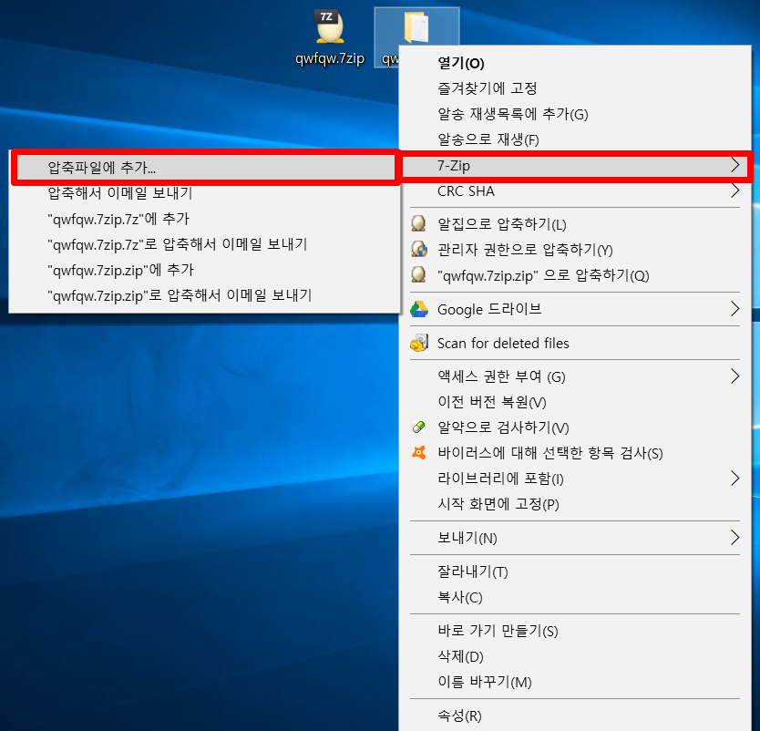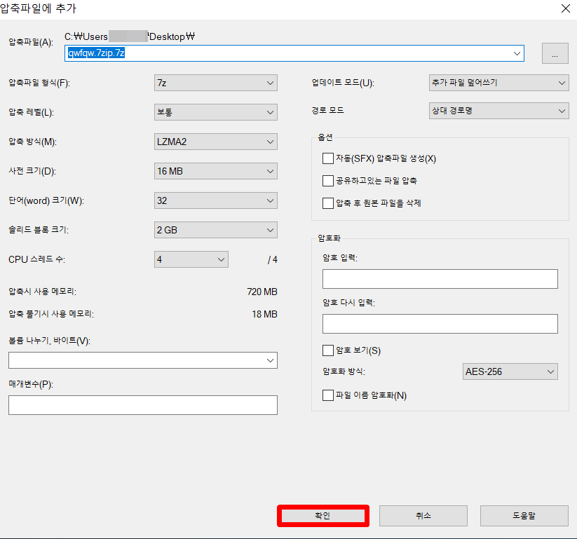 7zip 프로그램으로 파일 압축하는 방법