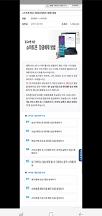 전원버튼+볼륨하단키 또는 손날 캡쳐를 하게 되면 사진처럼 하단 표시에 스마트 편집 메뉴가 나오게 됩니다. 여기서 사진의 위치처럼 ▽ 아래로 되어있는 버튼을 꾸욱 누르면 화면이 내려가면서 가로로 길게 캡쳐가 됩니다. 누르고 있는 버튼을 떼면 보여지고 있는 화면까지만 캡쳐가 되는 형식입니다. 결과물을 보도록 하겠습니다.