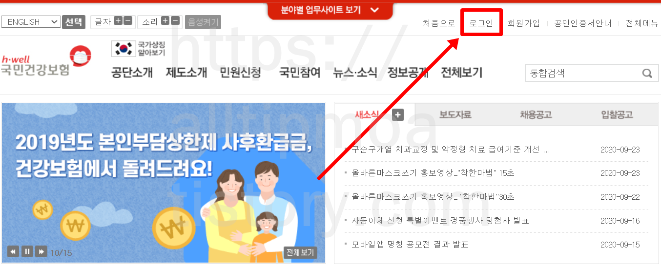 minwon.nhis.or.kr/ 들어가신 후에 위에 있는 로그인을 클릭해주시길 바랍니다.