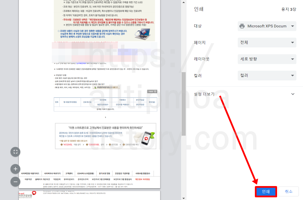 병원기록 진료내역을 프린터 인쇄하는 방법